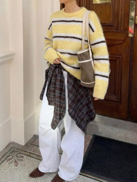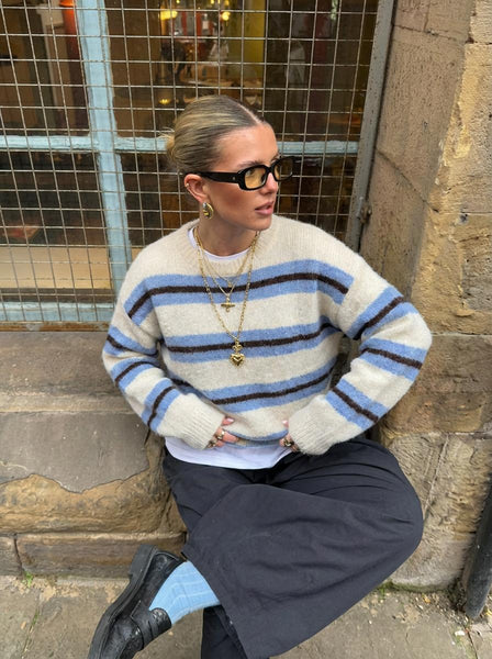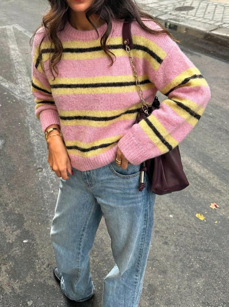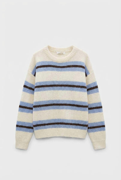 Un pull à rayures douces et lumineuses, à la maille moelleuse et confortable, Liana apporte une touche cosy, moderne et pleine de douceur à vos looks.