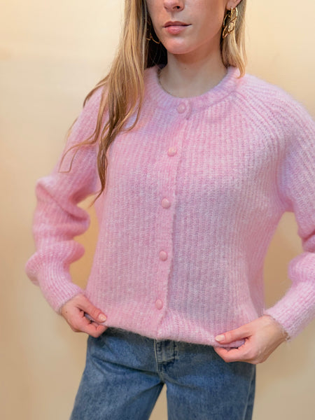 Gilet Jade en maille fine au toucher moelleux, habillé d’un rose tendre. Son encolure ronde et ses boutons assortis créent une silhouette simple et raffinée. Une pièce lumineuse, facile à associer, parfaite pour apporter douceur et élégance à toutes vos tenues.
